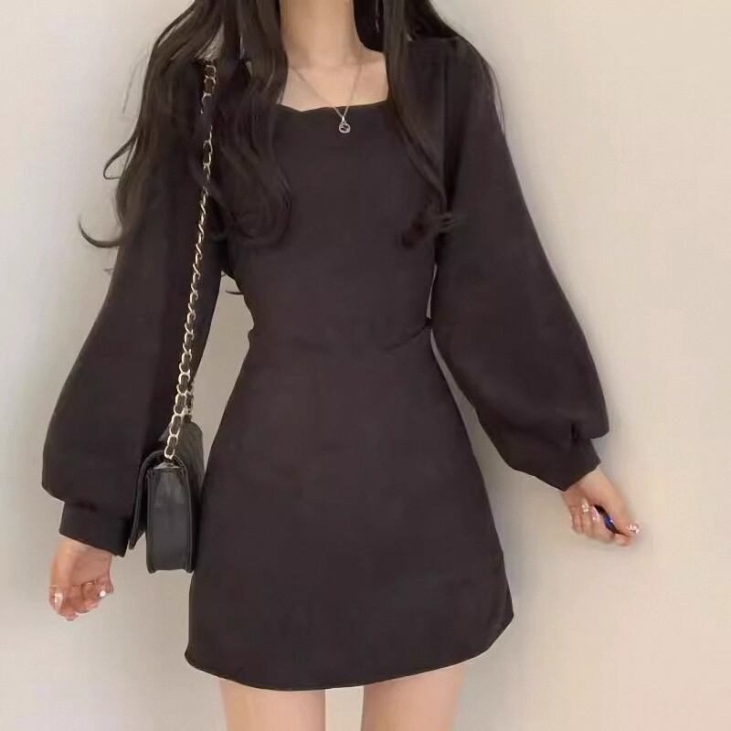 2color レディース ワンピース ミニ丈 ミニ ショート 長袖 Aライン ウエスト スクエアネック スクエアカラー スリム タイト きれいめ シンプル 大人 上品 おしゃれ お洒落 大人女子 クール M L XL 2XL カーキ 黒 ブラック 春 秋 冬 10代 20代 30代 女性用 デート お出かけ 女子会 休日 二次会 パーティ イベント 旅行 海外 紅葉 バケーション オルチャン スタイル 美脚 脚長 韓国 韓国系 ファッション モテ ギフト プレゼント 秋冬 レストラン ホテル ディナー