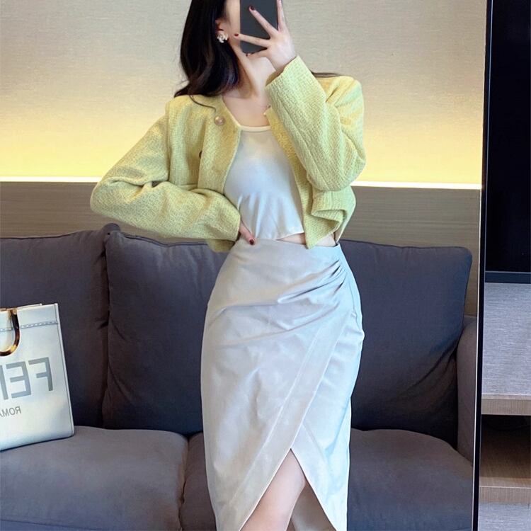 レディース アウター ジャケット 上着 ショート ショート丈 長袖 ラウンドネック クルーネック 襟なし ツイード きれいめ 大人 上品 おしゃれ お洒落 大人可愛い 可愛い 大人女子 ラブリー クール エレガント 主役級 フォーマル S M L 黄色 イエロー 無地 春 秋 冬 誕生日 入学式 入園式 卒業式 卒園式 冠婚葬祭 クリスマス 10代 20代 30代 40代 50代 ママ ママコーデ オフィス デート 女子会 パーティー イベント 旅行 韓国 韓国系 モテ プレゼント ギフト インスタ映え