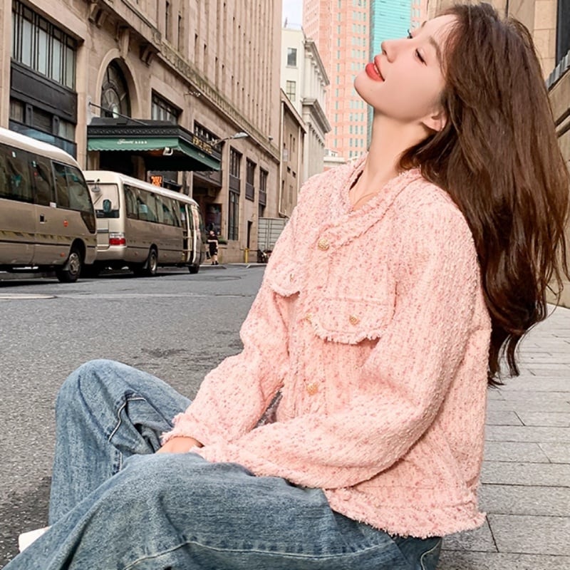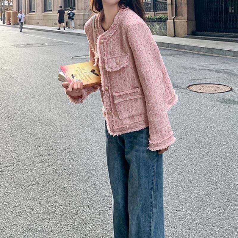 レディース アウター ジャケット 上着 長袖 ラウンドネック クルーネック 襟なし ツイード ポケット フリル きれいめ 大人 上品 おしゃれ お洒落 大人可愛い かわいい 大人女子 かっこいい クール エレガント 主役級 フォーマル S M L XL ピンク 春 秋 冬 誕生日 入学式 入園式 卒業式 卒園式 冠婚葬祭 結婚式 二次会 クリスマス バレンタイン 10代 20代 30代 40代 50代 ママ ママコーデ デート 女子会 パーティー イベント 旅行 韓国 モテ プレゼント インスタ映え