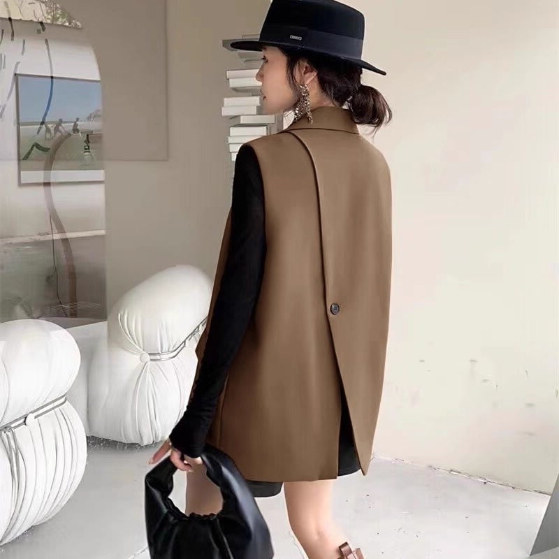 2color レディース アウター ベスト 上着 ノースリーブ 襟付き バックスリット きれいめ 大人 上品 こなれ感 おしゃれ お洒落 大人女子 スタイリッシュ モダン 存在感 シンプル かっこいい クール エレガント 主役級 フォーマル M L XL 2XL 3XL 黒 ブラック 茶色 ブラウン 無地 春 秋 入学式 入園式 結婚式 二次会 10代 20代 30代 40代 50代 お出かけ 休日 ママ ママコーデ デート 女子会 普段使い 旅行 海外 韓国 スタイル 体系カバー モテ プレゼント