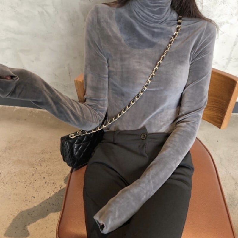 2color レディース ベロア カットソー ベルベット ハイネック タートルネック ボトルネック 長袖 袖長め 萌え袖 ミディアム丈 袖なし もこもこ ふわふわ フェイクファー 着回し インナー かわいい おしゃれ お洒落 大人可愛い 存在感 S M L 黒 ブラック グレー 灰色 無地 秋 冬 クリスマス バレンタイン 20代 30代 40代 50代 ママ ママコーデ デート お出かけ 女子会 休日 イベント 重ね着 普段使い あったか ポカポカ 韓国 韓国系 楽ちん プレゼント ギフト