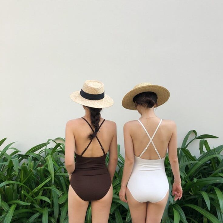 2color レディース おしゃれ 水着 スイムウェア オールインワン ワンピース バッククロス デザイン 無地 シンプル ホワイト 白 ブラウン 茶色 春夏 春 夏 海 プール 海外 旅行 海外旅行 ママ 20代 30代 40代 デート お出かけ 韓国 トレンド おしゃれ オシャレ お洒落 かわいい 可愛い 大人 大人女子 大人かわいい 大人可愛い