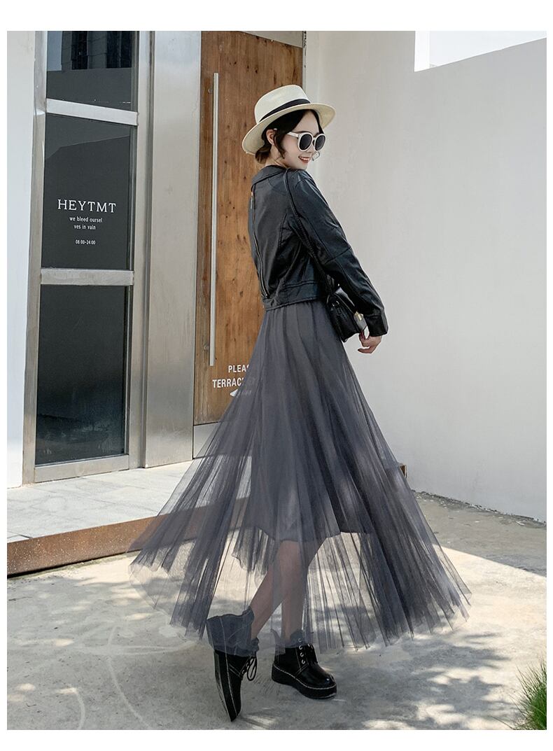 涼しげなライトカラーがかわいいチュールロングスカート。
