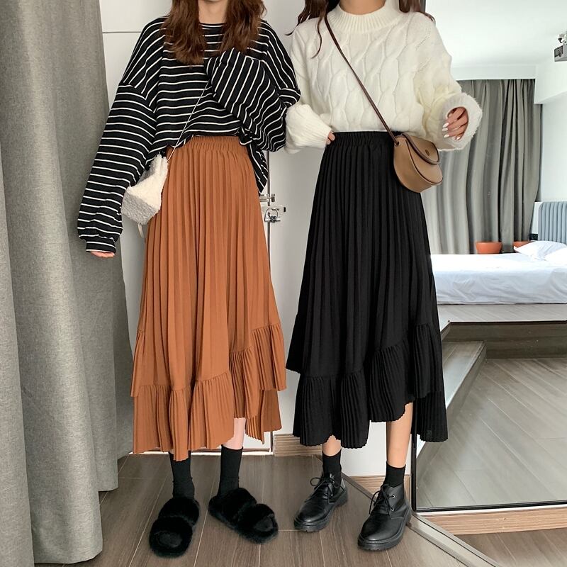 4color レディース スカート ロングスカート ロング丈 ミモレ丈 ミモレ 膝下 プリーツ 切り替え 切替 切り替えデザイン デザイン アシンメトリー 通勤 通学 オフィス ブラウン グレー ブラック ベージュ 茶色 黒 灰色 春夏 春 夏 秋冬 秋 冬 ママ 20代 30代 40代 デート お出かけ 普段使い 韓国 トレンド かわいい 可愛い 大人 大人女子 大人かわいい 大人可愛い おしゃれ オシャレ お洒落