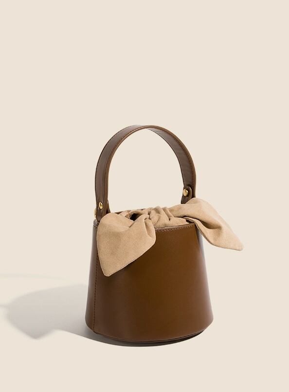 開口部がリボンになっている可愛らしいバケツ型バッグ。