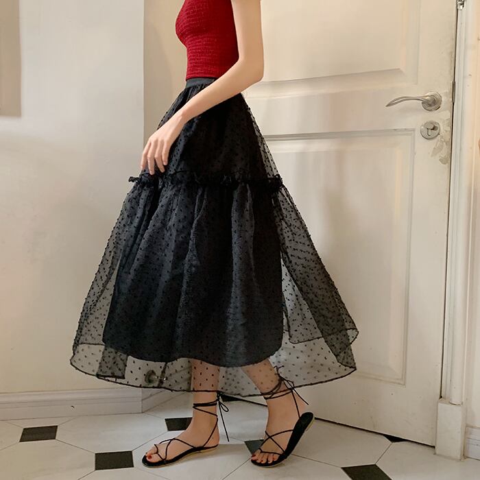 レディース スカート ロングスカート ミモレ丈 ミモレ マキシ丈 マキシ 膝下 レース レーススカート チュールスカート 透け感 ドット 水玉模様 フレア 切り替え フェミニン 華やか エレガント スタイリッシュ モード シック 黒 ブラック おしゃれ オシャレ お洒落 春夏 春 夏 秋冬 秋 冬 ママ ママコーデ 20代 30代 40代 デート お出かけ 普段使い 韓国 トレンド かわいい 可愛い 大人 大人女子 大人かわいい 大人可愛い 海外 旅行 海外旅行 通学 パーティードレス