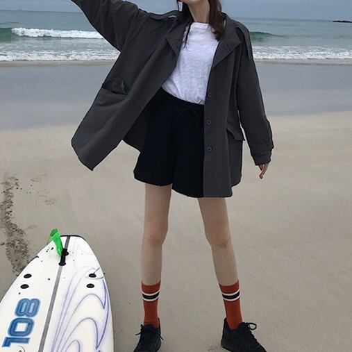 ドロップショルダーのオーバーシルエットデザインでトレンドをおさえたアウター。