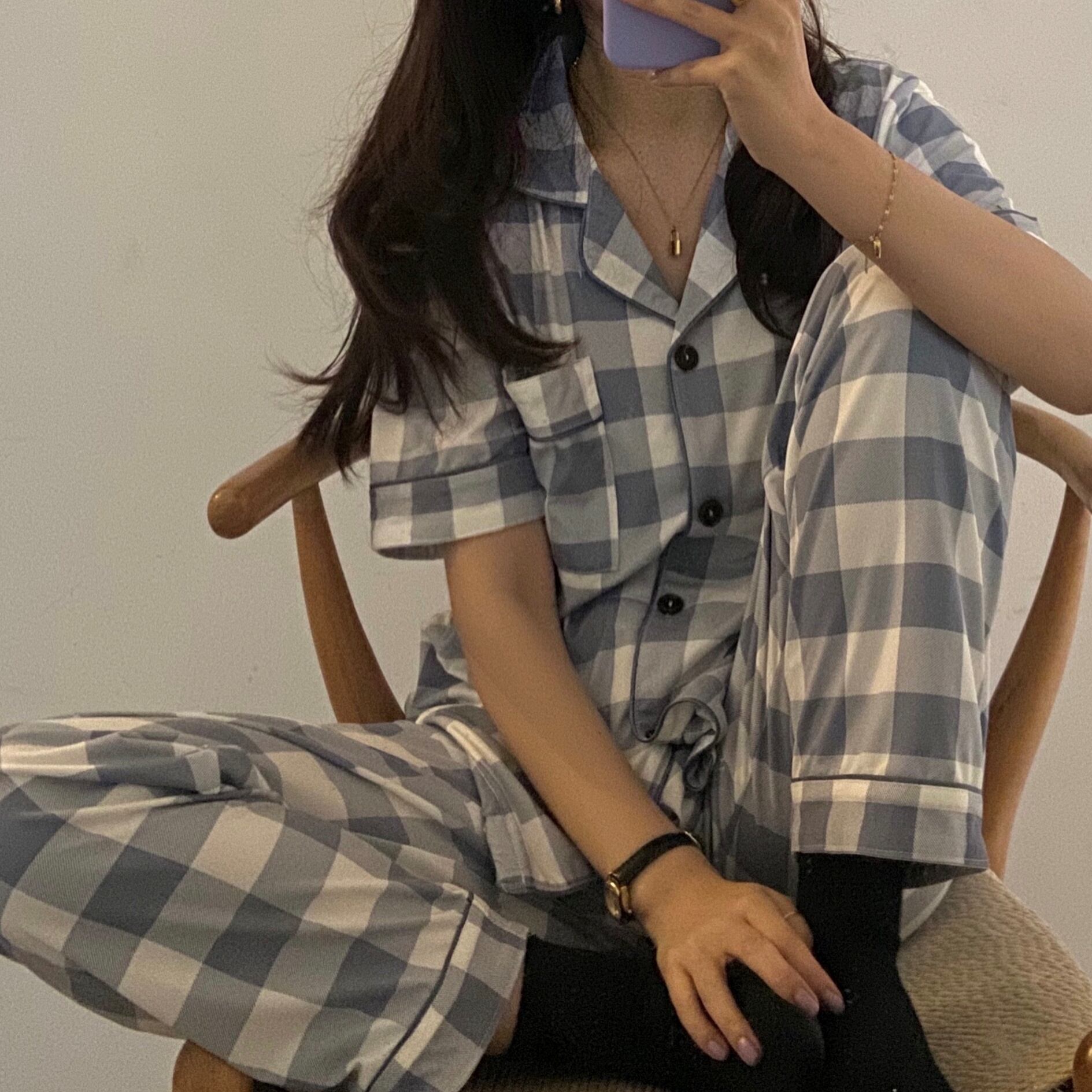 2color レディース ルームウェア パジャマ 部屋着 セット 上下セット Vネック シャツ 半そで 半袖 長ズボン ロングパンツ チェック ギンガムチェック チェック柄 定番 ベーシック リラックス ゆったり ピンク ブルー 爽やか おしゃれ オシャレ お洒落 春夏 春 夏 秋冬 秋 冬 ママ ママコーデ 20代 30代 40代 デート 普段使い 韓国 トレンド かわいい 可愛い 大人 大人女子 大人かわいい 大人可愛い 海外 旅行 海外旅行 オフ 休日