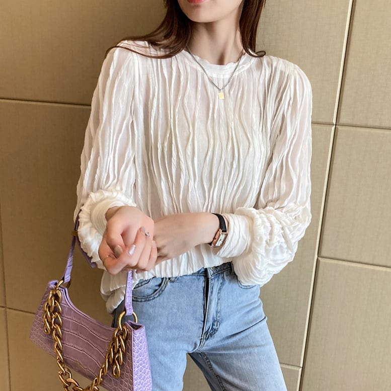 洗練された雰囲気が漂うワッシャー加工のブラウス。