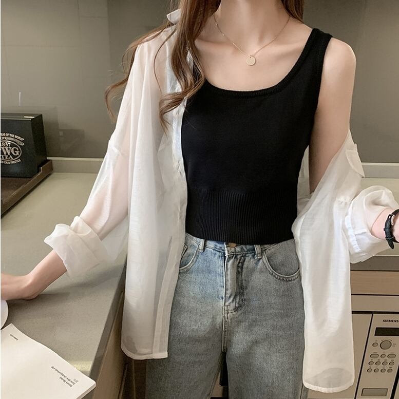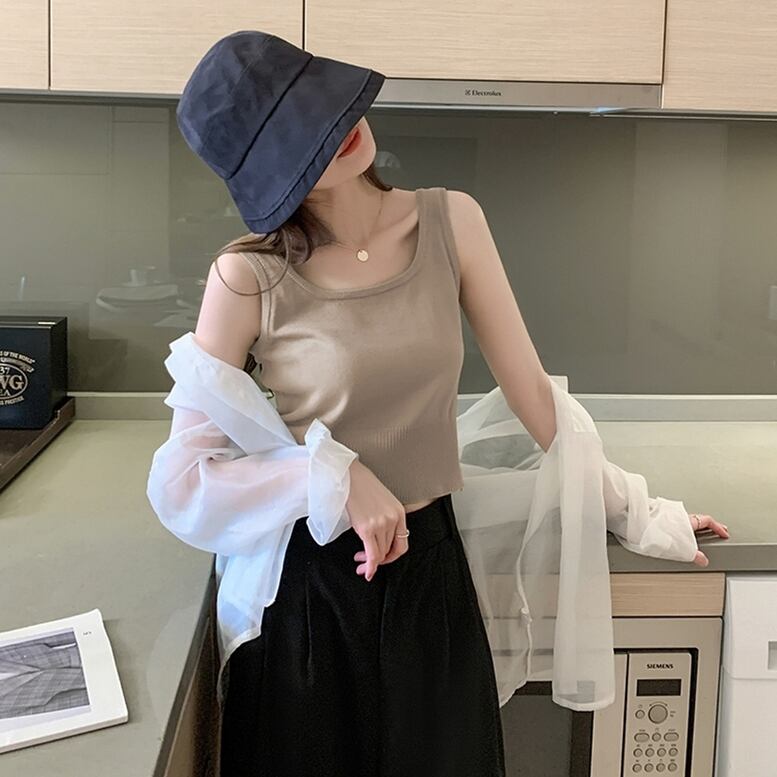 インナーとしてだけではなく一枚でも着られるような厚めの生地で仕立てたタンクトップ。