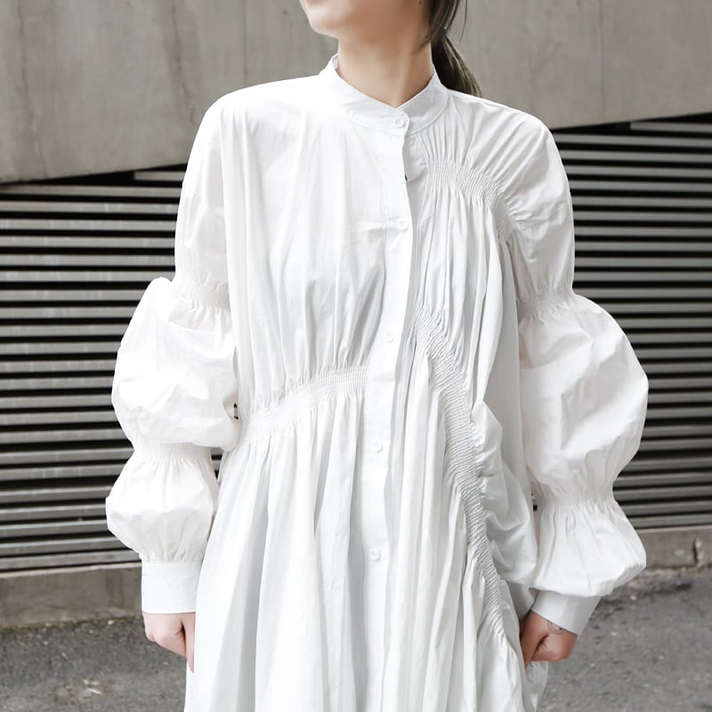 2color レディース トップス シャツ ワンピース シャツワンピ ひざ丈 膝丈 襟なし バンドカラー ボリューム袖 アシンメトリー アシメ フレア ギャザー 主役級 上品 クール 大人カジュアル きれいめ スタイリッシュ モード系 体型カバー おしゃれ オシャレ お洒落 春夏 春 夏 秋冬 秋 冬 ママ ママコーデ 20代 30代 40代 デート お出かけ デイリー 普段使い 韓国 トレンド かわいい 可愛い 大人 大人女子 大人かわいい 大人可愛い 海外 旅行 海外旅行 オフィス 仕事 通勤 通学