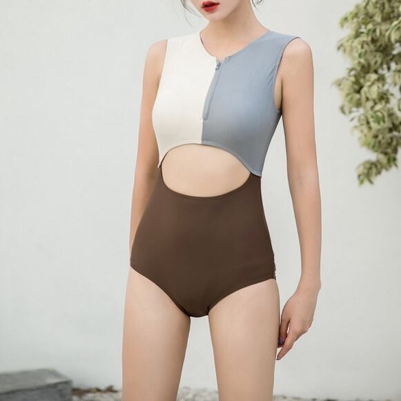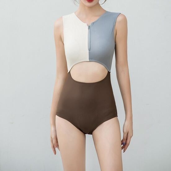 レディース スイムウェア 水着 オールインワン ワンピース ノースリーブ フロントジップ ファスナー マルチカラー くすみカラー 体型カバー ハイウエスト 脚長効果 レトロ 個性的 シンプル おしゃれ オシャレ お洒落 春夏 春 夏 秋冬 秋 ママ ママコーデ 20代 30代 40代 デート お出かけ 普段使い 韓国 トレンド かわいい 可愛い 大人 大人女子 大人かわいい 大人可愛い 海 プール ビーチ パーティー 海外 旅行 海外旅行 休日 オフ