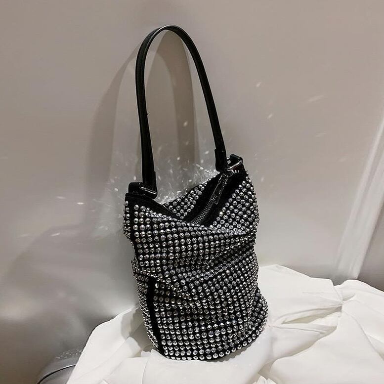 メタリックなビジューでクシュっとした柔らかさが特徴のキラキラバッグ。