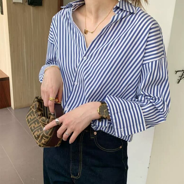 一枚でもレイヤードでも使いやすいベーシックなストライプ柄オーバーサイズシャツ