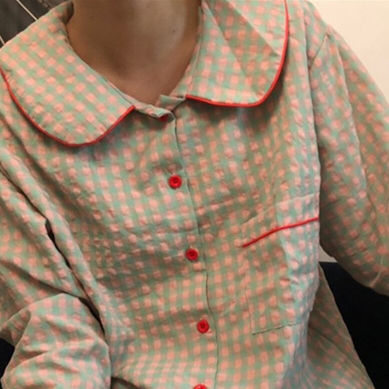 2color レディース レトロガーリーチェック柄ルームウェア 上下2点セット パンツ セットアップ ルームウェア シャツ 部屋着 ナイトウェア 上下セット 2点セット ツーピース 大人可愛い レトロ キュート ガーリー ゆったり ゆる 青 ブルー 緑 グリーン パステルカラー ニュアンスカラー チェック柄 楽ちん インスタ映え おしゃれ オシャレ お洒落 春夏 春 夏 秋冬 秋 冬 ママ ママコーデ オフィス 仕事 通勤 通学 ドレス デート お出かけ 普段使い 大人 かわいい 可愛い トレンド