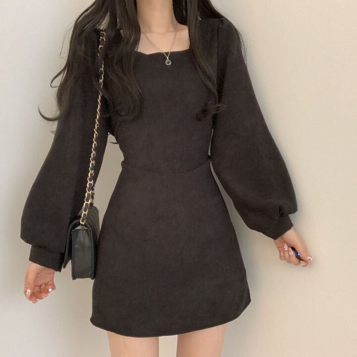 2color レディース ワンピース ワンピドレス スカート スクエアネック ミニ丈 ミニワンピ パフスリーブ ミニスカート きれいめ シンプル 上品 かっこいい クール セクシー エレガント モダン 黒 ブラック ブラウン 茶 ベージュ 無地 おしゃれ オシャレ お洒落 春夏 春 夏 秋冬 秋 冬 ママ ママコーデ 20代 30代 40代 デート お出かけ 普段使い 韓国 トレンド かわいい 可愛い 大人 大人女子 大人かわいい 大人可愛い