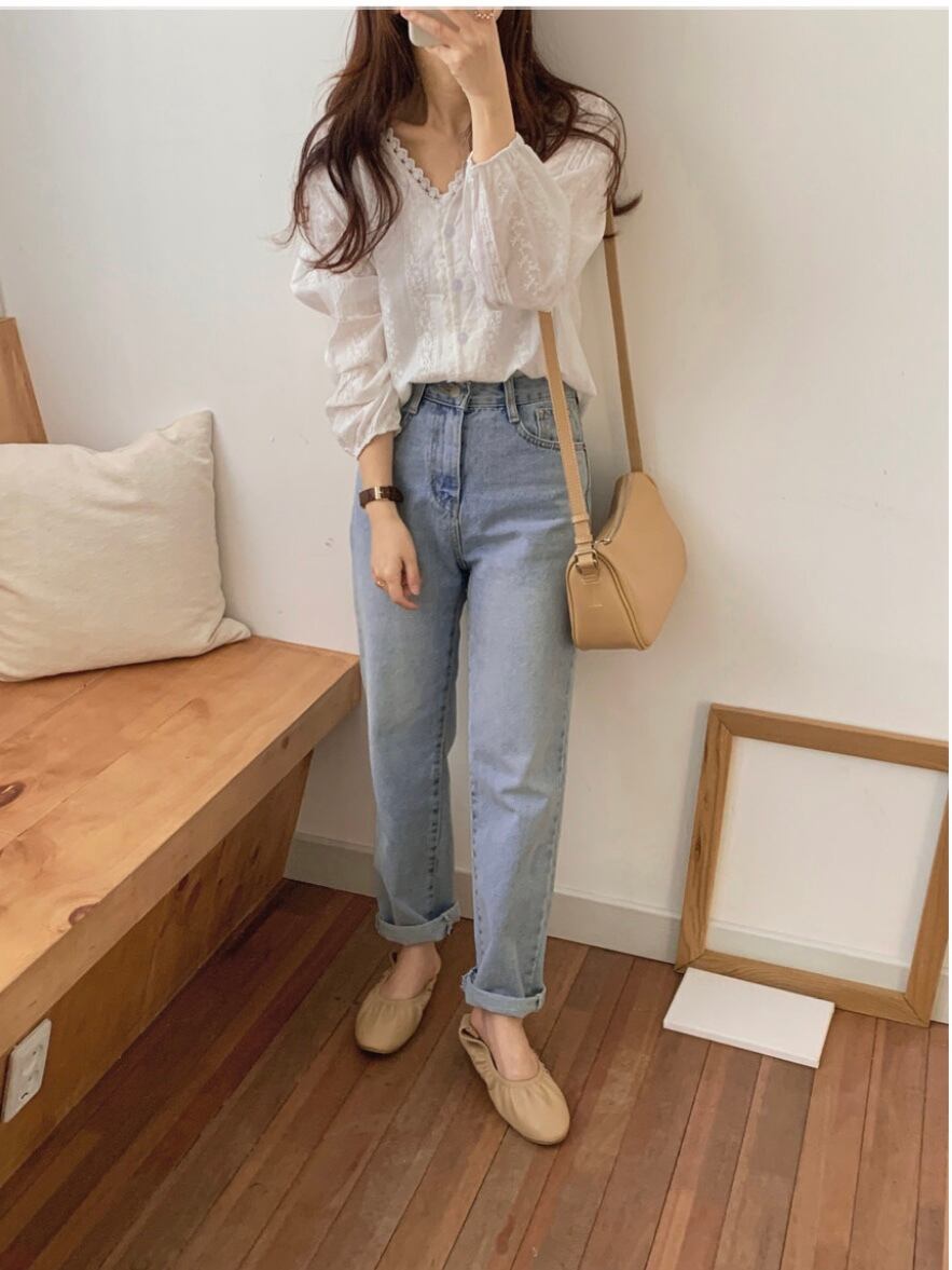 ふんわりとしたシルエットで女性らしいスタイリングに。