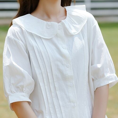 2color レディース トップス シャツ ブラウス 丸襟 フラットカラー タック 半袖 半そで 五分丈 5分丈 パフスリーブ ボリューム袖 ボリュームスリーブ 大人カジュアル カジュアル スタイリッシュ キュート フェミニン ガーリー イエロー 白 おしゃれ オシャレ お洒落 春夏 春 夏 秋冬 秋 ママ ママコーデ 20代 30代 40代 デート お出かけ デイリー 普段使い 韓国 トレンド かわいい 可愛い 大人 大人女子 大人かわいい 大人可愛い 海外 旅行 海外旅行 オフィス 仕事 通勤 通学