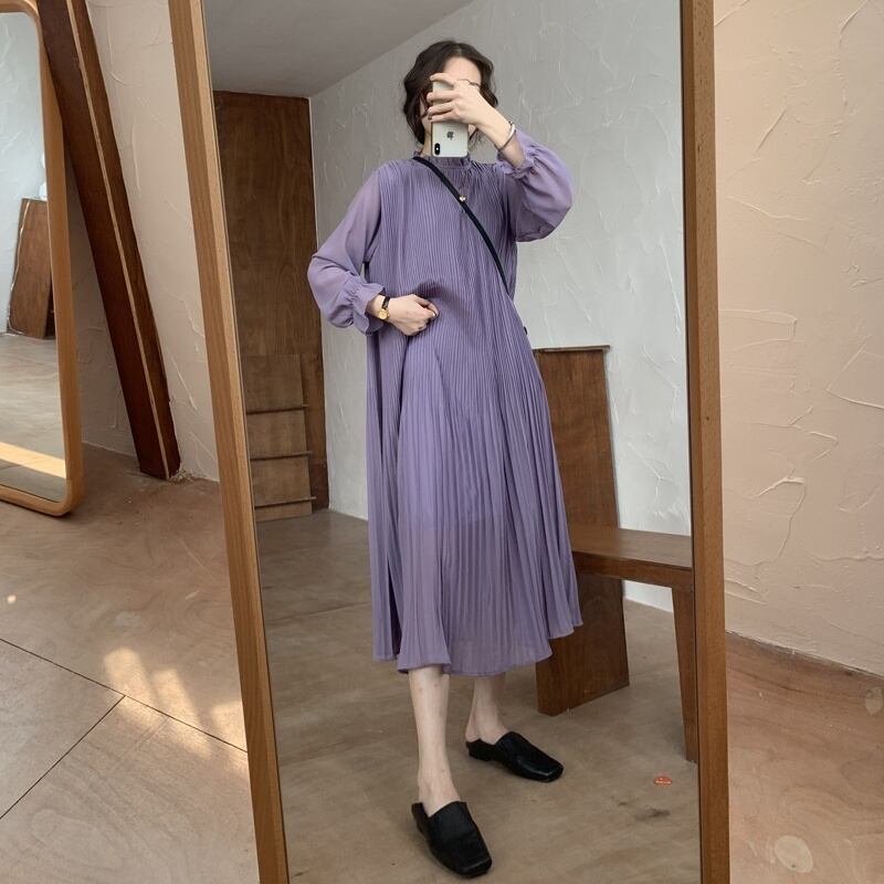 レディース ワンピース ロングワンピース 長袖 長そで ロング丈 ロング マキシ マキシ丈 ミモレ ミモレ丈 アンクル丈 プリーツ プリーツワンピ シフォン 透け感 フリル襟 パープル フェミニン カジュアル 大人カジュアル 華やか きれいめ キレイめ 清楚 キュート エレガント おしゃれ オシャレ お洒落 春夏 春 夏 ママ 20代 30代 40代 デート お出かけ 普段使い 韓国 トレンド かわいい 可愛い 大人 大人女子 大人かわいい 大人可愛い 休日 オフ 通学 通勤