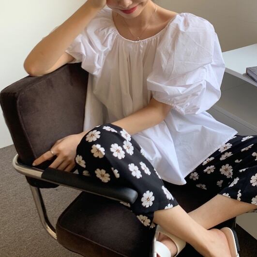パフスリーブとバックリボンがポイントの大人可愛いトップス。