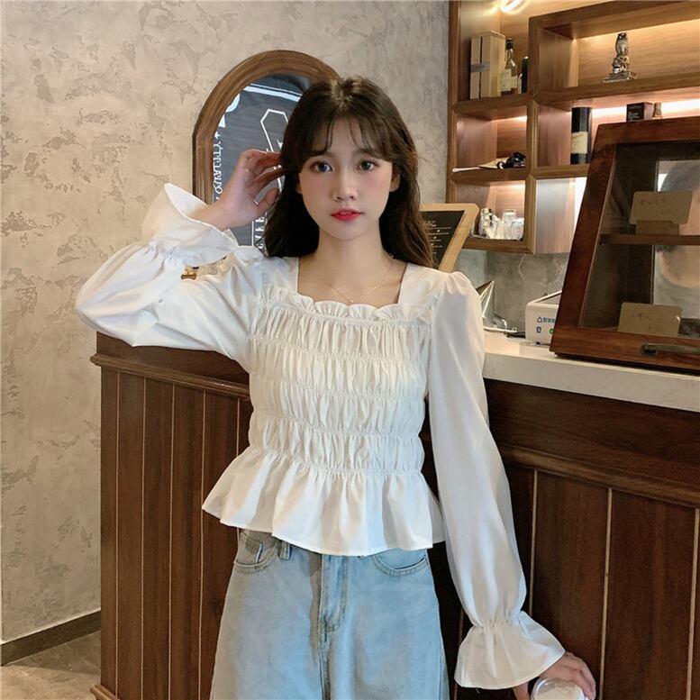 3color レディース シャーリング長袖トップス スクエアネックブラウス シャーリングプルオーバー トップス シャツ ブラウス カットソー 白シャツ 白トップス 長袖 フレアスリーブ スクエアネック フリル 大人可愛い きれいめ 上品 レトロ 大人女子 こなれ感 キュート ガーリー 白 ホワイト 黒 ブラック レッド モテ インスタ映え おしゃれ オシャレ お洒落 春夏 春 夏 秋冬 ママコーデ オフィス 仕事 通勤 通学 二次会 ドレス デート お出かけ 普段使い 大人 かわいい 可愛い トレンド