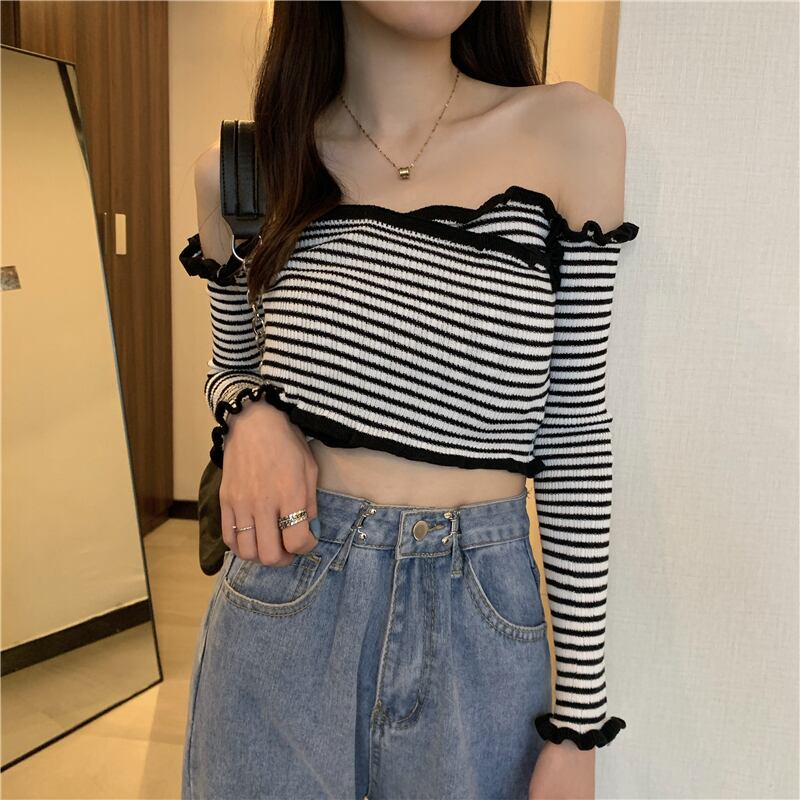 9color レディース トップス ショート ショート丈 オフショル オフショルダー 長袖 長そで シャーリング ヘルシー ラップ ストレッチ 伸縮性 フィット感 フィット 無地 ボーダー カラーバリエーション キュート ガーリー おしゃれ オシャレ お洒落 春夏 春 秋冬 秋 冬 ママ ママコーデ 20代 30代 40代 デート お出かけ 普段使い デイリー 韓国 トレンド かわいい 可愛い 大人 大人女子 大人かわいい 大人可愛い 海外 旅行 海外旅行 オフ 休日