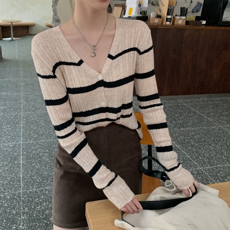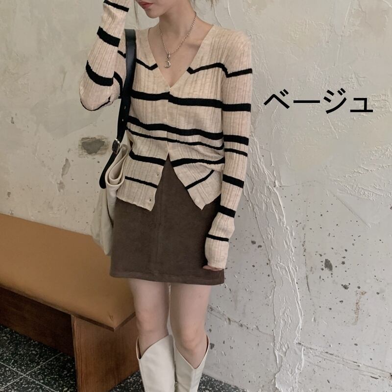 5color レディース トップス ニット ニットカーディガン リブ リブ素材 リブニット Vネック ボーダー 長そで 長袖 タイト フィット感 フィット ストレッチ 伸縮性 キュート ガーリー おしゃれ オシャレ お洒落 春夏 春 秋冬 秋 冬 ママ ママコーデ 20代 30代 40代 デート お出かけ 普段使い デイリー 韓国 トレンド かわいい 可愛い 大人 大人女子 大人かわいい 大人可愛い 海外 旅行 海外旅行オフィス 仕事 通勤 通学 オフ 休日
