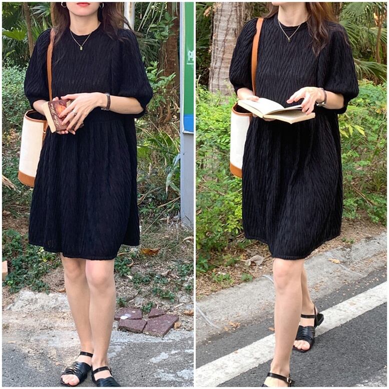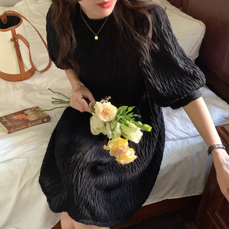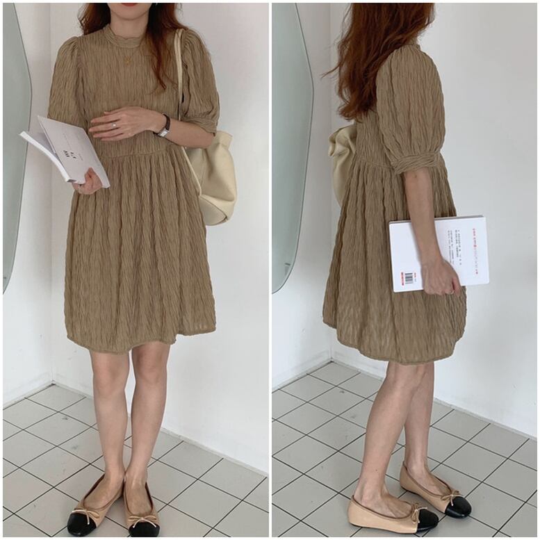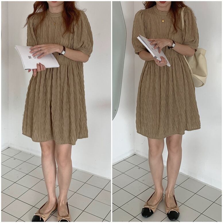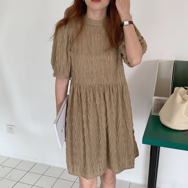 3color レディース ワッシャー シワ加工 パフ袖 ミディアムワンピース ワンピース dress ワンピドレス チュニック ひざ丈ドレス ミニドレス ひざ上 半袖 パフスリーブ クルーネック セミフレア シフォン エレガント 大人可愛い きれいめ 華やか 上品 レトロ クラシック キュート ガーリー 白 ホワイト 黒 ブラック ブラウン お呼ばれ 演奏会 発表会 体型カバー インスタ映え おしゃれ オシャレ お洒落 春 夏 通学 二次会 デート お出かけ 普段使い かわいい 可愛い トレンド