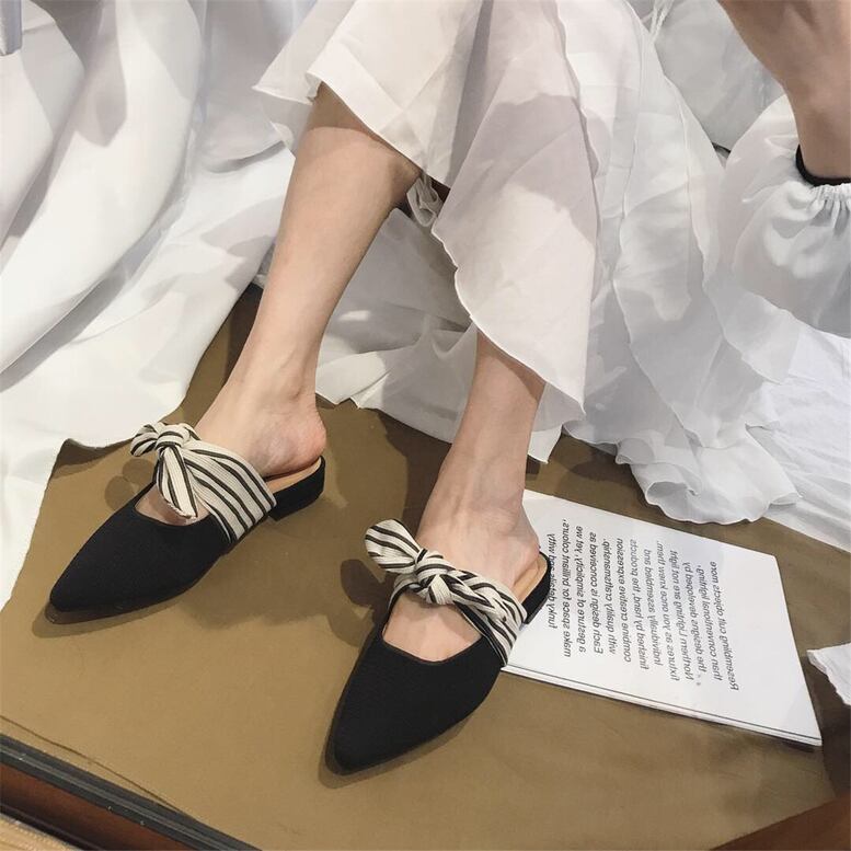 2color レディース スカーフリボンシューズ ストライプ柄リボンポインテッドトゥサボサンダル シューズ レディースシューズ パンプス ポインデットトゥパンプス レディースサンダル ミュールサンダル ローヒール リボン ふわふわ 大人可愛い きれいめ 上品 レトロ エレガント ガーリー 黒 ブラック ベージュ 大人カラー ニュアンスカラー ストライプ OL 女子会 休日 イベント リゾート 旅行 おしゃれ 春夏 春 夏 通勤 通学 二次会 デート お出かけ 普段使い 大人 かわいい 可愛い トレンド