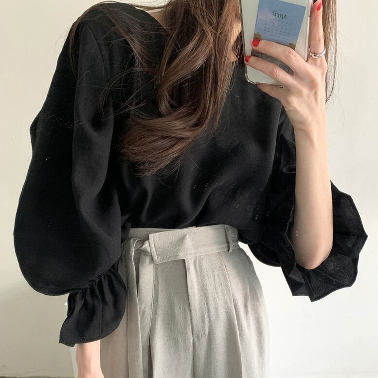 ふんわりボリュームがありフェミニンな印象のトップス。