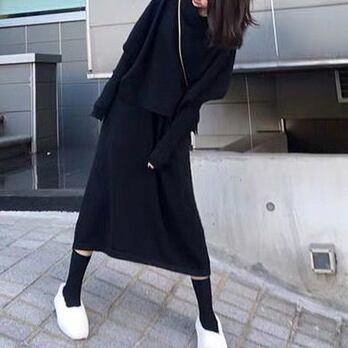レディース ワンピース セットアップ セット売り 膝下 ミモレ ミモレ丈 袖あり 半袖 長袖 ニット プルオーバー Uネック ラウンドネック クルーネック セミフレア Aライン 2way 2点セット かわいい 大人可愛い 大人 おしゃれ お洒落 大人可愛い 大人女子 クール モード系 M L XL 2XL 3XL 4XL 黒 ブラック 無地 春 秋 10代 20代 30代 デート お出かけ 女子会 お泊まり 休日 着回し 普段使い 重ね着 ファッション コーデ スタイル モテ