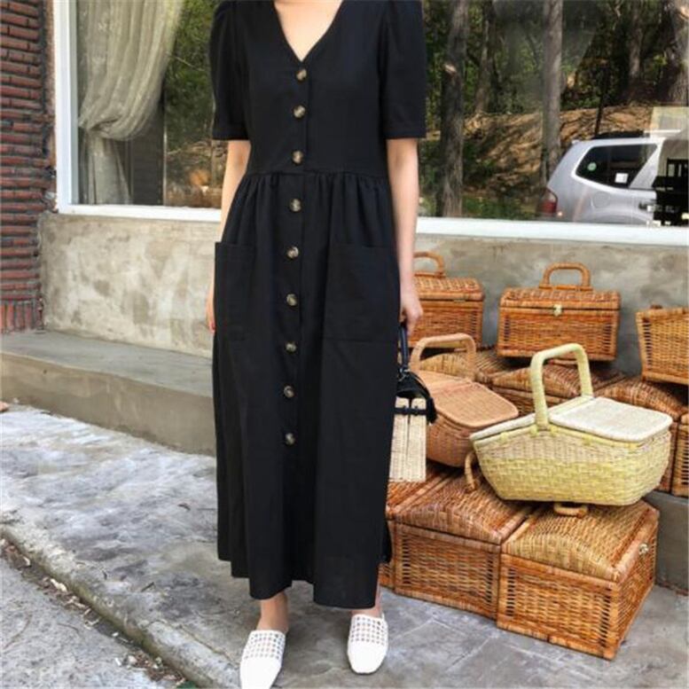 2color レディース 麻綿フロントボタンフレアワンピース ドレス ワンピース シャツワンピース ワンピドレス ロング マキシ丈 半袖 Vネック フレア ハイウエスト エレガント 大人可愛い きれいめ ナチュラル 華やか 上品 レトロ 黒 ブラック ベージュ ニュアンスカラー 体型カバー 二の腕カバー 脚長 高見え おしゃれ オシャレ お洒落 春夏 春 夏 仕事 通勤 通学 パーティー 二次会 デート お出かけ 普段使い 大人 かわいい 可愛い トレンド