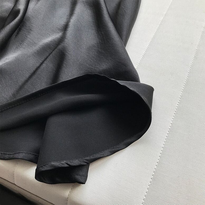 Aラインでたっぷり生地を使いながらも広がり過ぎない上品なスカート。動くたびに光をまとって表情を変える光沢素材はコーディネートをシックな大人の印象に仕上げてくれます。プレーンなシャツからパーカーなどとのカジュアルミックスコーデまでおしゃれに決まる1枚です。
