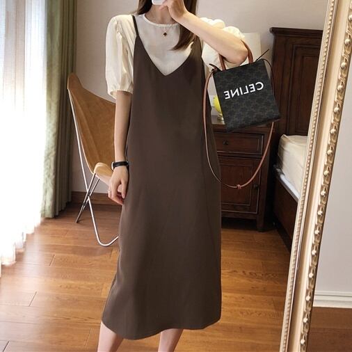 2color レディース トップス ワンピース セットアップ シャツ ブラウス カットソー 膝下 ミモレ ミモレ丈 袖なし 袖あり ノースリーブ 半袖 Vネック Uネック ラウンドネック ストレート 綿 2点セット ツーピース かわいい 大人可愛い きれいめ 上品 おしゃれ お洒落 大人可愛い 大人女子 M L 白 ホワイト 黒 ブラック 緑 茶色 ブラウン 無地 春 夏 10代 20代 30代 デート お出かけ 着回し 普段使い 重ね着 ファッション コーデ スタイル モテ