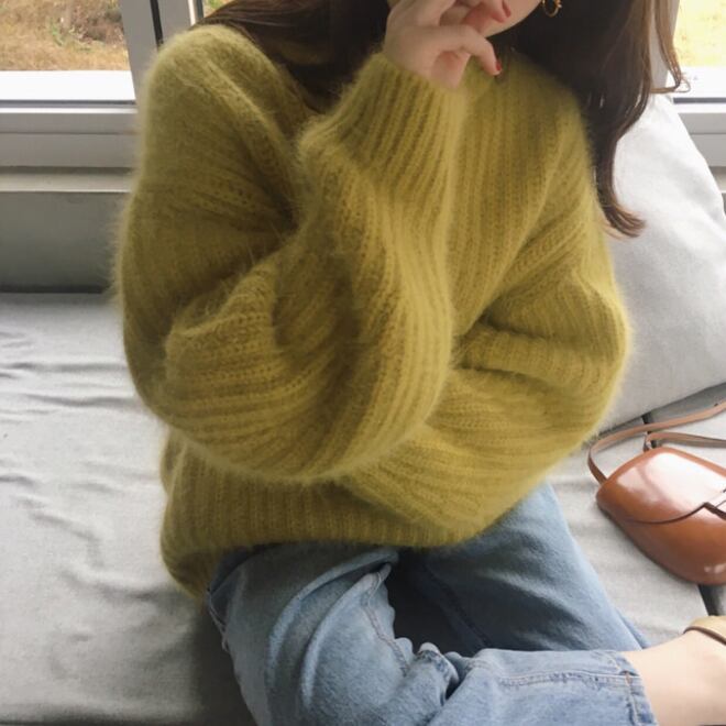 4color レディース トップス ニット セーター 長そで 長袖 ラウンドネック ゆったり もこもこ モコモコ ふんわり ふわふわ ブルー ピンク ブラウン 茶色 イエロー 黄色 体型カバー 無地 シンプル 大人カジュアル こなれ感 きれいめ キレイめ 清楚 キュート エレガント おしゃれ オシャレ お洒落 春夏 春 夏 秋 冬 ママ 20代 30代 40代 デート お出かけ 普段使い 韓国 トレンド かわいい 可愛い 大人 大人女子 大人かわいい 大人可愛い 休日 オフ 通学