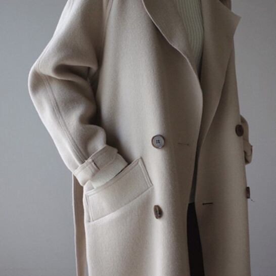 ストンと落ちたシルエットがスッキリ見せてくれる、どんなコーディネートともマッチする大人の雰囲気あるロングコートです。