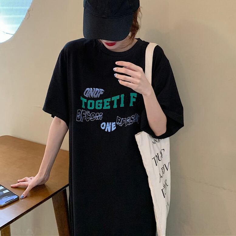 2color レディース ワンピース スリット入りロングTワンピース ルーズシルエットTシャツワンピースTシャツ シャツ 部屋着 ルームウェア ロング マキシ 半袖 ラウンドネック ワイド スリット 大人可愛い 大人女子 こなれ感 ラフ マニッシュ キュート ガーリー ルーズ 抜け感 ゆったり ゆる プリント 楽ちん 体型カバー インスタ映え おしゃれ オシャレ お洒落 春夏 春 夏 通勤 通学 お出かけ 普段使い 大人 かわいい 可愛い トレンド
