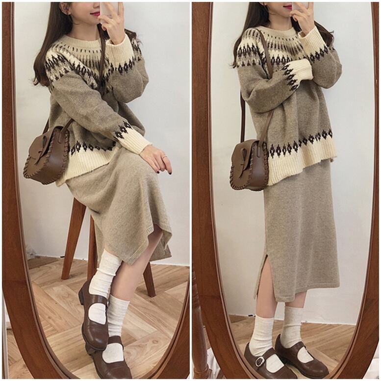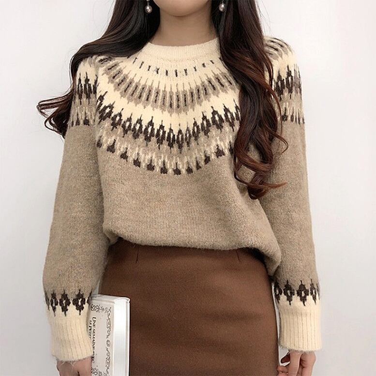 3color レディース フェアアイル柄ニット 求心柄ニットトップス ノルディックニット レトロニットプルオーバー トップス セーター 長袖 ドロップショルダー ラウンドネック ニット 大人可愛い きれいめ 上品 レトロ 大人女子 こなれ感 キュート ガーリー ゆったり ニュアンスカラー ボタニカル 楽ちん モテ 体型カバー インスタ映え おしゃれ オシャレ お洒落 春 秋冬 秋 冬 仕事 通勤 通学 デート お出かけ 普段使い かわいい 可愛い