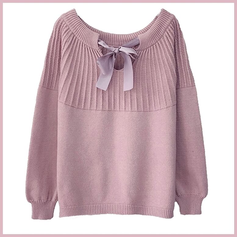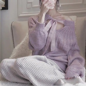 前後2wayで使えるトップスとリブパンツのフェミニンなニットアップ。リボンが可愛いプルオーバーニットは前でも後でも着られて目を惹きつけます。セットのリラクシーなニットパンツはニュアンスカラーで上品なコーデが完成。
