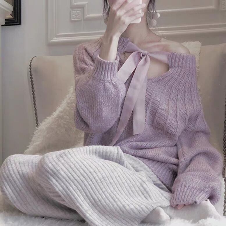 レディース 2wayニットセットアップ セットアップ セーター ワイドパンツ ストレートパンツ 上下セット 2点セット ツーピース オールインワン オフショルダー リボン ハイウエスト リブニット ニット 大人可愛い きれいめ 上品 レトロ 大人女子 キュート ガーリー エレガント 大人カラー ニュアンスカラー 楽ちん 体型カバー 二の腕カバー モテ 高見え 格上げ インスタ映え おしゃれ オシャレ お洒落 春 秋冬 秋 冬 通勤 通学 デート お出かけ 普段使い 大人 かわいい 可愛い トレンド