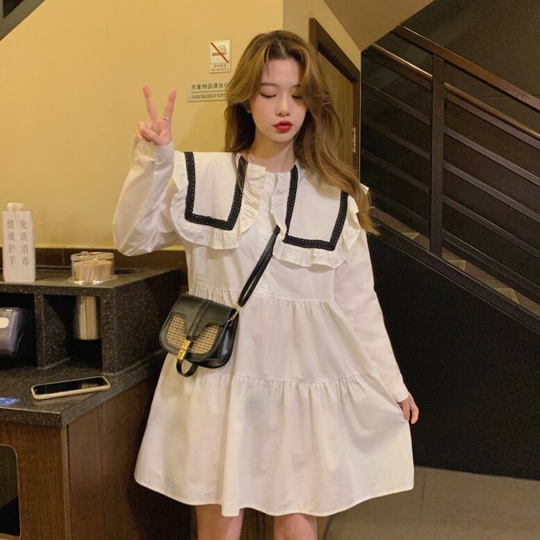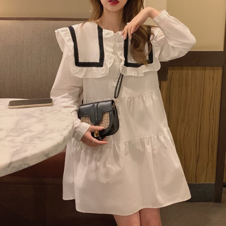 2color レディース 大きいサイズ フリルカラーワンピース フリルビッグカラーミニワンピース ワンピース ドレス dress シャツワンピース フレアワンピース ティアードワンピース ミニドレス ショート ひざ上 長袖 襟付き フレア フリル エレガント 大人可愛い きれいめ 華やか 上品 レトロ クラシック キュート ガーリー 白 ホワイト 黒 ブラック 演奏会 発表会 体型カバー モテ 高見え インスタ映え おしゃれ 春夏 春 夏 通勤 通学 二次会 デート お出かけ