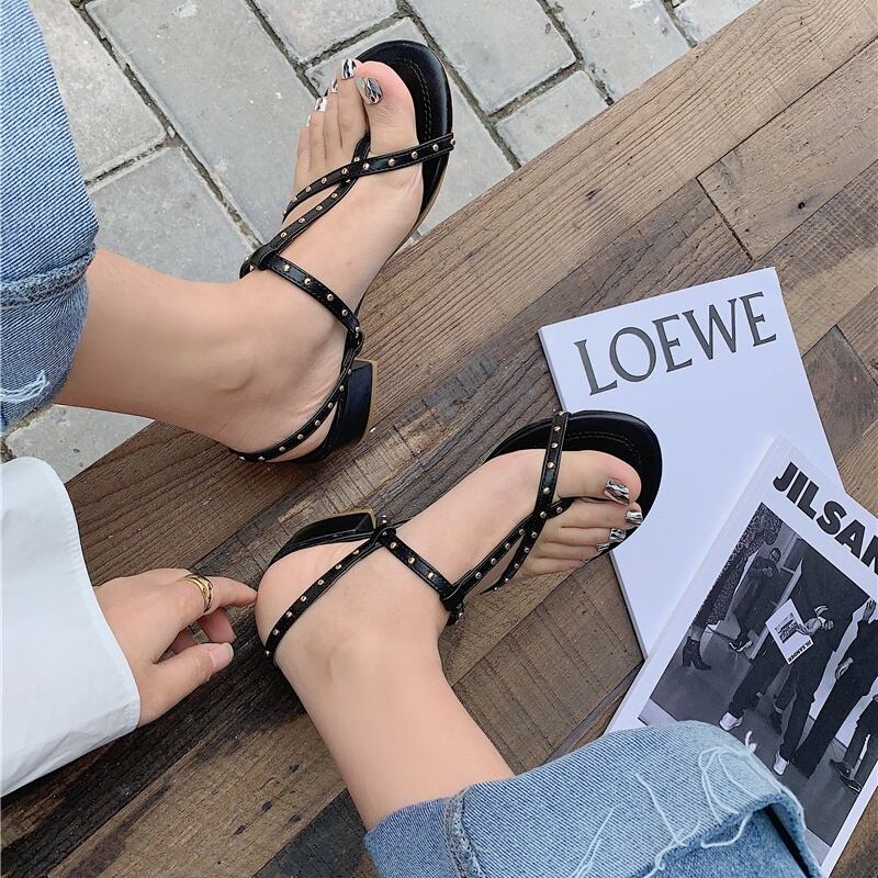 ストラップでホールド感のある、トレンドの太ヒールサンダル。