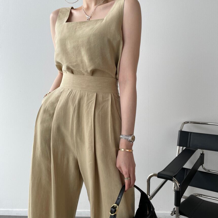 4color レディース セット セットアップ ノースリーブ 袖なし スクエアネック パンツ ロングパンツ 長ズボン ロング丈 ハイウェスト ハイウエスト 脚長効果 ワイドパンツ パーティー らく ラク リラックス 無地 シンプル 大人カジュアル こなれ感 きれいめ キレイめ スタイリッシュ 抜け感 おしゃれ オシャレ お洒落 春夏 春 夏 秋 冬 ママ 20代 30代 40代 デート お出かけ 普段使い 韓国 トレンド かわいい 可愛い 大人 大人女子 大人かわいい 大人可愛い 通勤 通学 オフ 休日