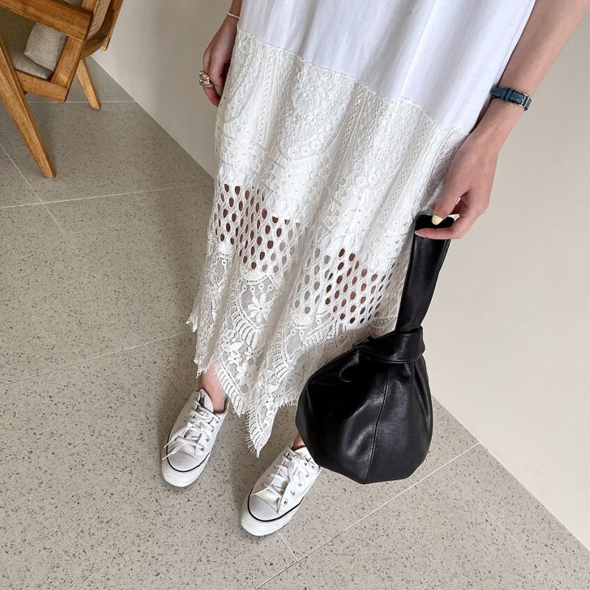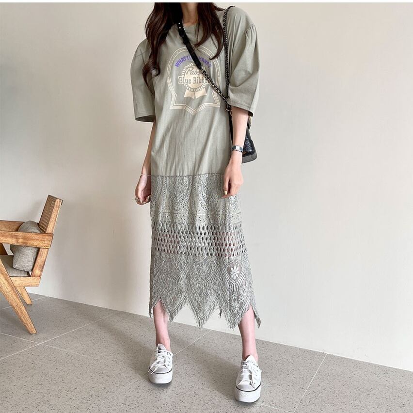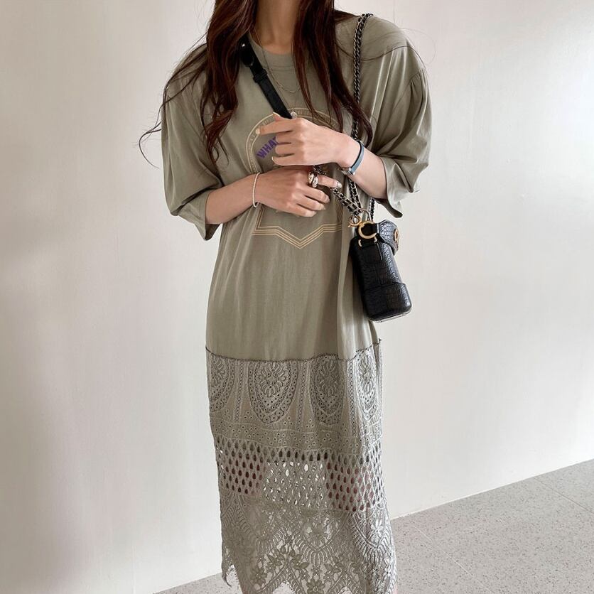 2color レディース ワンピース ロングワンピース ロング ロング丈 ミモレ ミモレ丈 クルーネック 半そで 半袖 五分丈 Tシャツ カットソー ロゴ デザイン ロゴT 切り替え 切り替えデザイン レース 編み 透かし編み 大人カジュアル カジュアル ラク 透け感 おしゃれ オシャレ お洒落 春夏 春 夏 秋 冬 秋冬 ママ 20代 30代 40代 デート お出かけ 普段使い 韓国 トレンド かわいい 可愛い 大人 大人女子 大人かわいい 大人可愛い 休日 オフ 旅行 海外 リゾート ビーチ 海