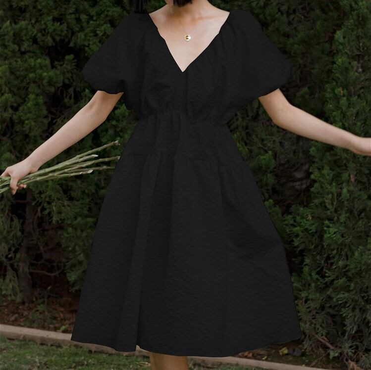 2color レディース ワンピース ドレス dress フレアワンピース きれいめワンピース Vネック 前後2way 膝丈 ひざ丈 半袖 パフスリーブ フレア おしゃれ オシャレ お洒落 春夏 春 夏 秋冬 秋 冬 ママ ママコーデ 20代 30代 40代 デート お出かけ 普段使い 韓国 トレンド かわいい 可愛い 大人 大人女子 大人かわいい 大人可愛い フェミニンコーデ 綺麗めコーデ 夏コーデ ガーリーコーデ