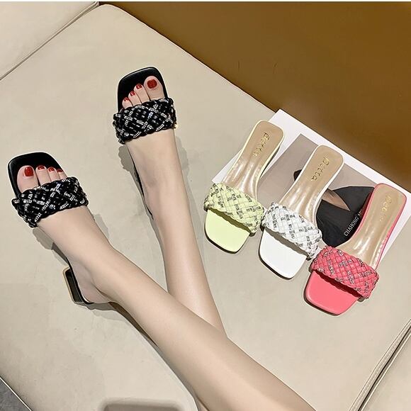 4color レディース サンダル ミュール レディースサンダル ローヒール 太ヒール ヒール 3.5㎝ PU スリッパ 編み込み 編み 装飾 ビジュー キラキラ カジュアル 大人カジュアル キュート おしゃれ オシャレ お洒落 春夏 春 夏 秋冬 秋 ママ ママコーデ 20代 30代 40代 デート デイリー お出かけ 普段使い 韓国 トレンド かわいい 可愛い 大人 大人女子 大人かわいい 大人可愛い 海 プール ビーチ ビーチパーティー 海外 旅行 海外旅行 オフ 休日