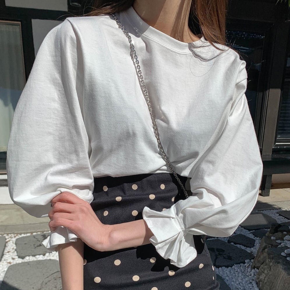 レディース トップス カットソー ラウンドネック 長袖 長そで 9分丈 7分丈 バルーンスリーブ ボリューム袖 キャンディースリーブ ふんわり ホワイト カジュアル 大人カジュアル きれいめ キレイめ 爽やか 薄手 キュート エレガント 上品 おしゃれ オシャレ お洒落 春夏 春 夏 秋 冬 秋冬 ママ 20代 30代 40代 デート お出かけ 普段使い 韓国 トレンド かわいい 可愛い 大人 大人女子 大人かわいい 大人可愛い 休日 オフ 通学 デイリー 通勤 仕事 パーティー 旅行 海外 海外旅行