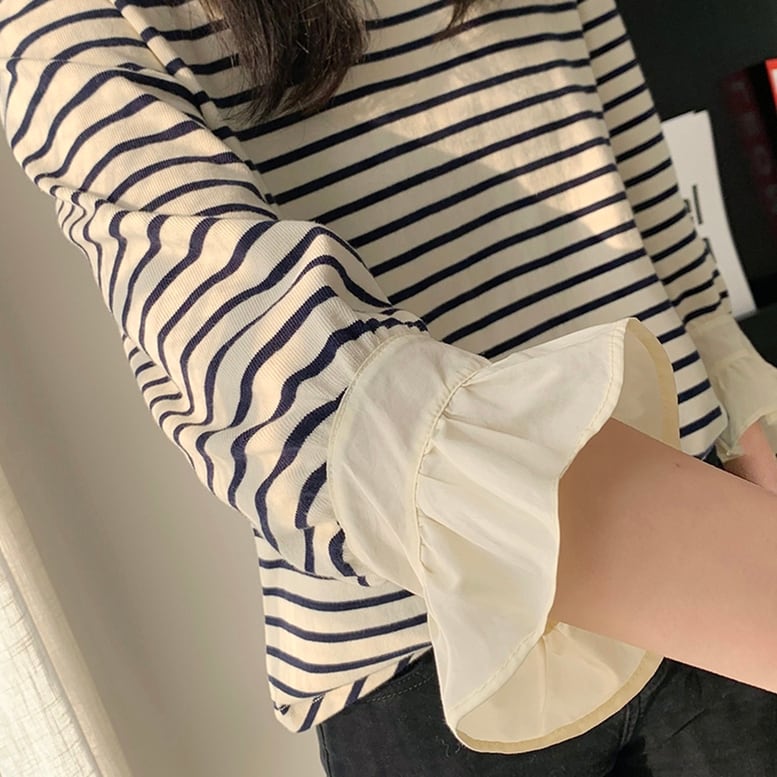 2color レディース ボーダーカットソー フリル袖ボーダーシャツ トップス Tシャツ プルオーバー 長袖 フレアスリーブ ドロップショルダー ラウンドネック 大人可愛い きれいめ 上品 キュート ガーリー ニュアンスカラー ボーダー 定番 おしゃれ オシャレ お洒落 春夏 春 夏 秋冬 秋 冬 オフィス 通勤 通学 二次会 デート お出かけ 普段使い 大人 かわいい 可愛い トレンド