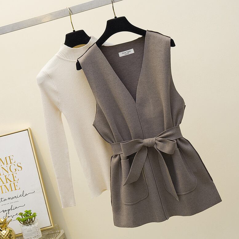 3color レディース ベルト付きベスト+リブニット2点セット ベストジャケット×ニットトップスセットアップ スエード風ベルト付きベスト&リブ編みニットセット セットアップ 2点セット ツーピース ベスト チュニック 袖なし 長袖 Vネック ペプラム ウエストマーク ウエストリボン リブニット ニット 大人可愛い きれいめ 上品 大人女子 こなれ感 モード系 エレガント ニュアンスカラー 体型カバー 高見え おしゃれ 春夏 春 秋冬 秋 冬 オフィス 通勤 通学 二次会 デート お出かけ 普段使い