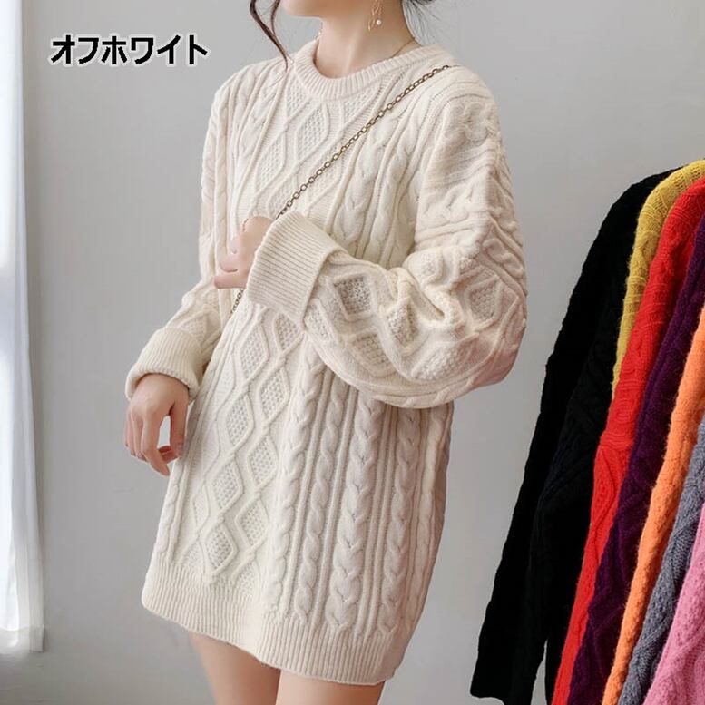 8color レディース チュニック丈ケーブルニット ケーブル編みニット オーバーサイズニット トップス セーター プルオーバー チュニック 長袖 ドロップショルダー クルーネック ワイド ビッグシルエット 大人可愛い きれいめ 上品 大人女子 こなれ感 マニッシュ キュート ガーリー エレガント ゆったり 重ね着 楽ちん 体型カバー 二の腕カバー 定番 おしゃれ オシャレ お洒落 春夏 春 秋冬 秋 冬 オフィス 通勤 通学 デート お出かけ 普段使い 大人 かわいい トレンド
